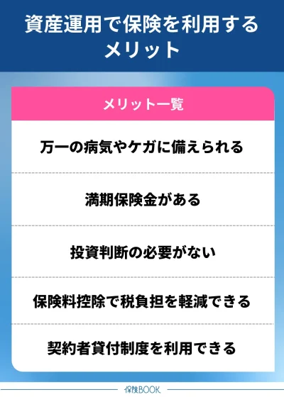 資産運用で保険を利用するメリットは、以下のとおりです。