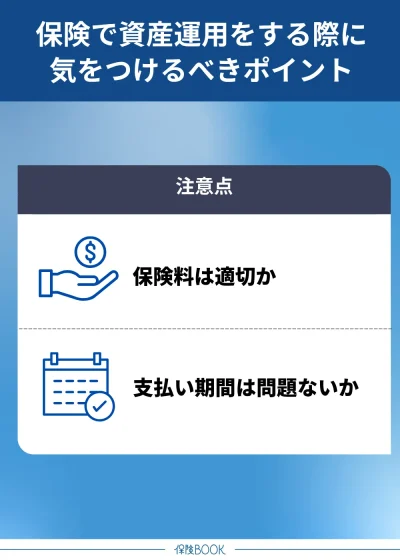 保険で資産運用をする際に気をつけるべきポイントは、以下のとおりです。
