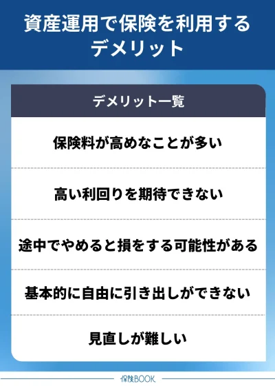 資産運用で保険を利用するデメリットは、以下のとおりです。