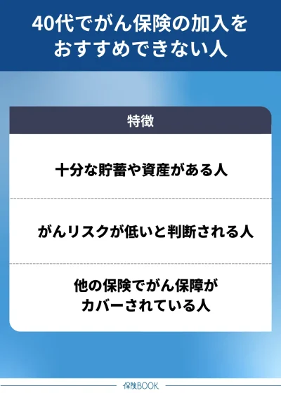 - 40代はがんの発症率が急激に上昇する年代で、備えを始める人が多い