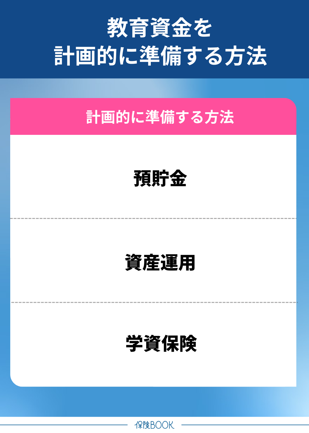 教育資金を計画的に準備するには、主に以下のような方法があります。