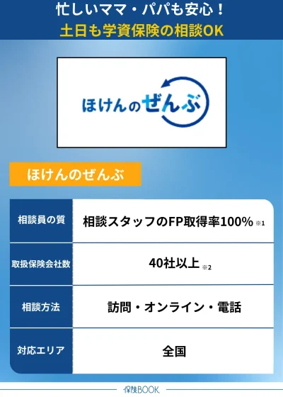 ほけんのぜんぶは、相談スタッフ全員がFPの資格を取得している保険相談窓口です※1。