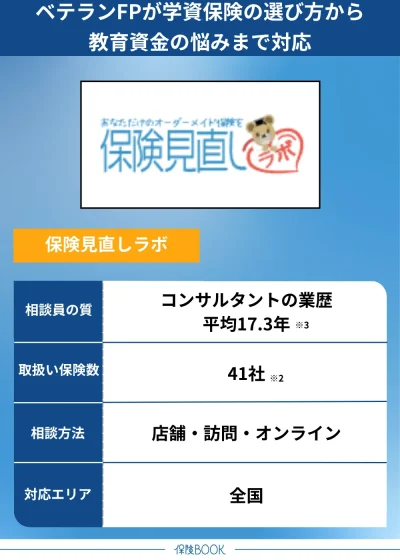 また、業歴平均17.3年※3のベテランFPが多数在籍しているところも特徴的です。ベテランならではの視点でサポートを受けられる点は、保険見直しラボの強みだといえます。