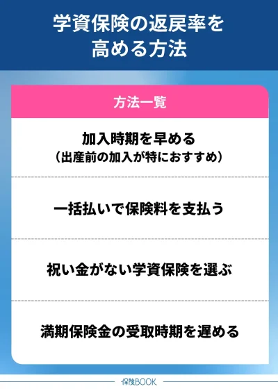 ここからは、学資保険の返戻率を高める方法を紹介します。