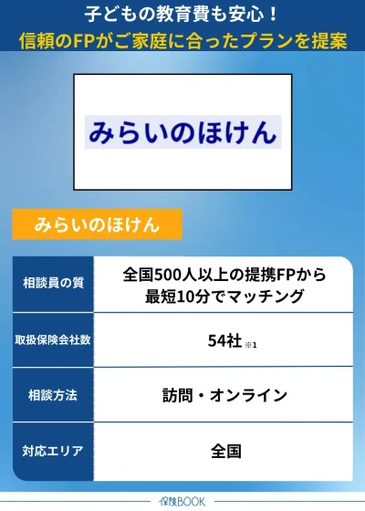 そのため、保険以外にもNISAや住宅ローンなどの相談にも乗ってもらえます。学資保険選びで悩んでいる方だけでなく、教育資金の準備方法として学資保険が適切なのか迷っている方にもおすすめです。
