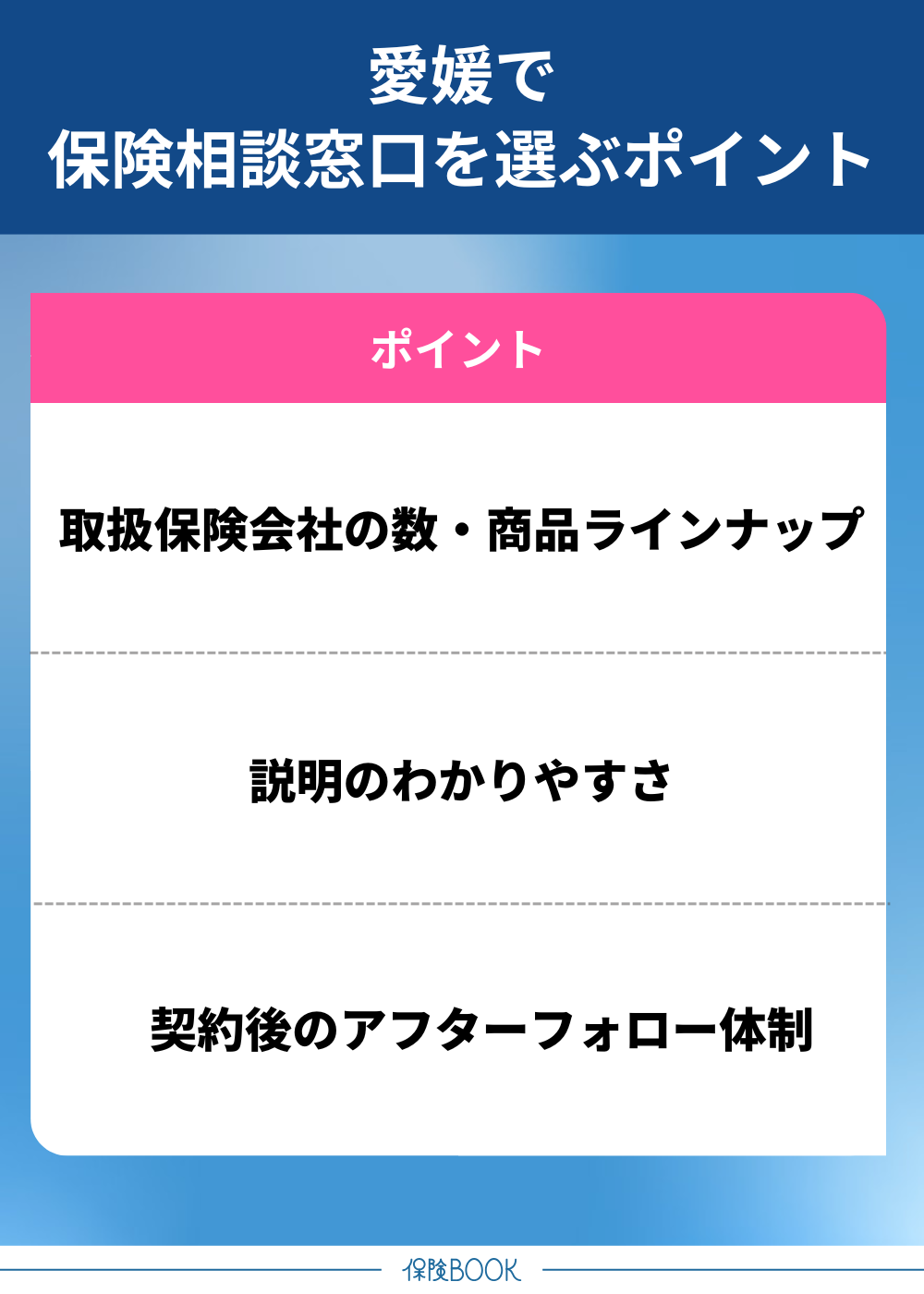 愛媛で保険相談窓口を選ぶポイントは、以下の通りです。