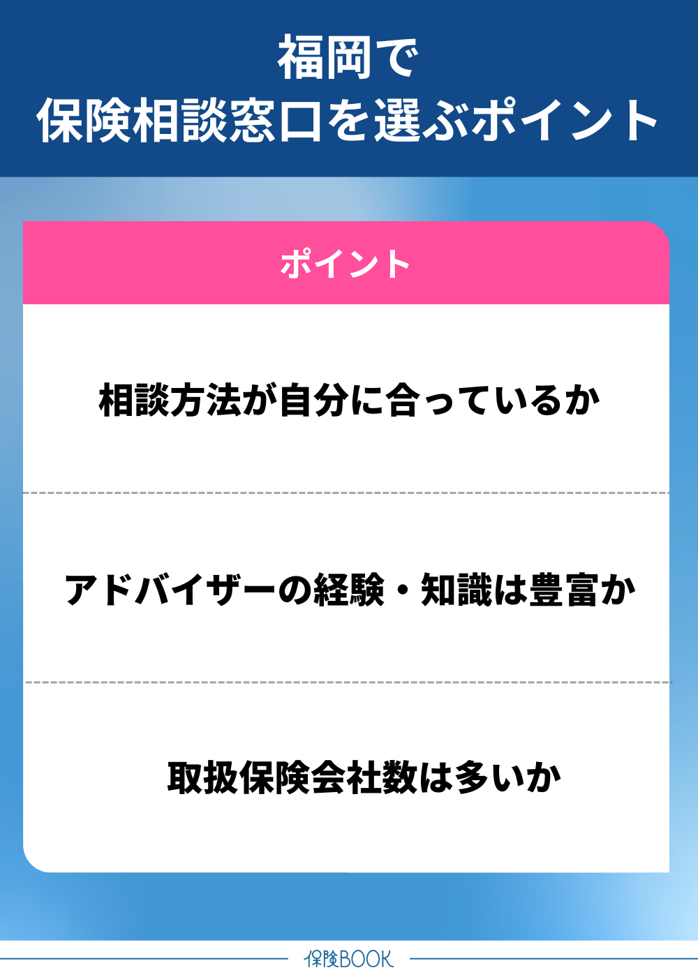 福岡で保険相談窓口を選ぶポイントは、以下の通りです。