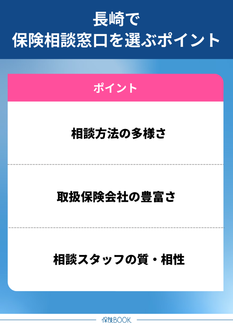 長崎で保険相談窓口を選ぶポイントは、以下の通りです。