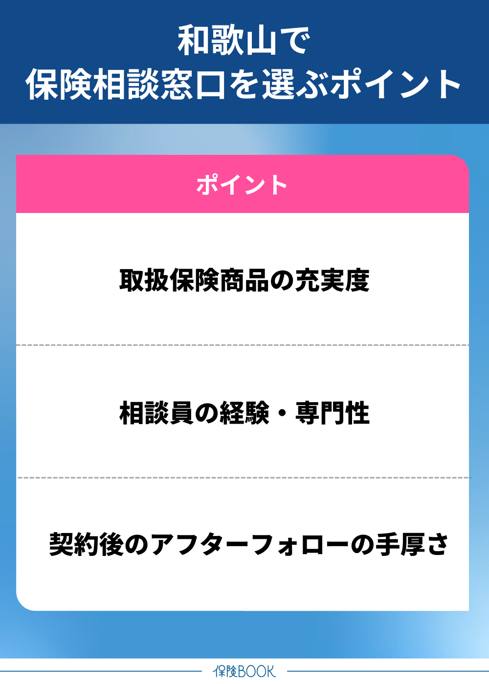 和歌山で保険相談窓口を選ぶポイントは、以下の通りです。