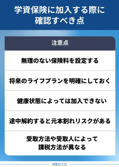 学資保険に加入する際に確認しておきたい注意点は、以下のとおりです。