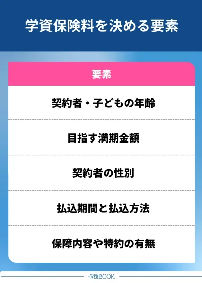 学資保険に加入する際、月々の保険料がどのように決まるのか気になる方も多いでしょう。ここでは、保険料を左右する代表的な要素を解説していきます。