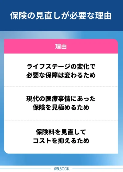 保険は一度加入して終わりではなく、人生の節目ごとに定期的に内容を見直し、その時に合った保障内容へ柔軟に変更することが大切です。