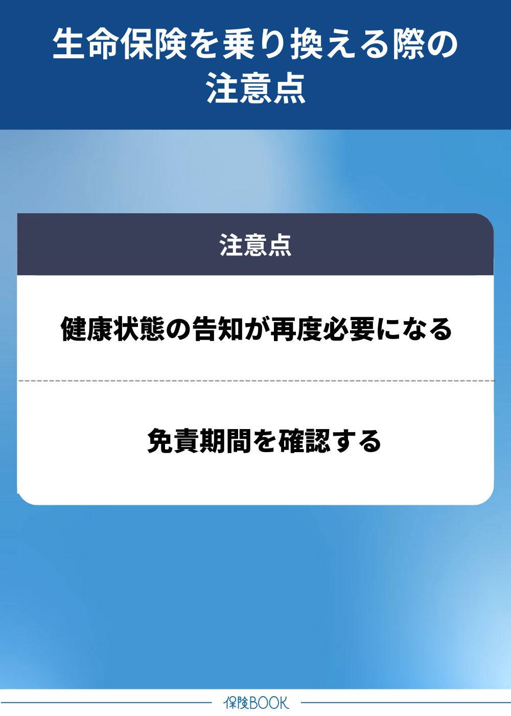 生命保険を乗り換える際の注意点は、以下のとおりです。