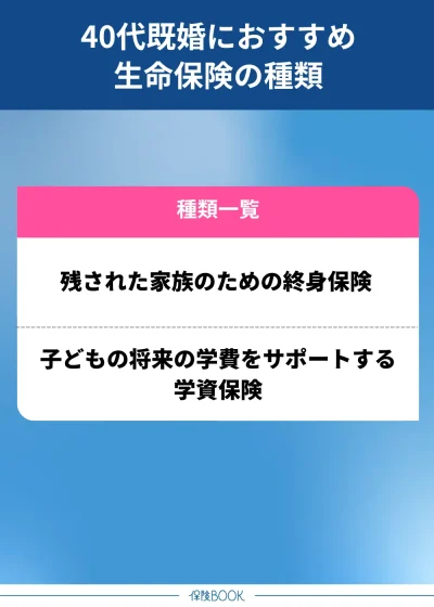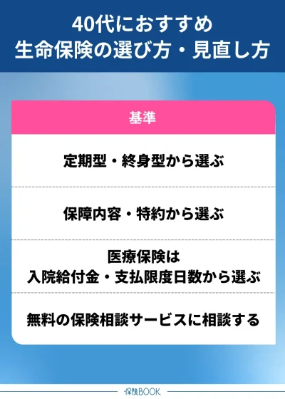 - 40代からは貯蓄型や医療保障のあるタイプも選択肢に