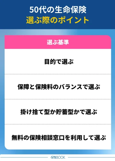 50代は老後資金の準備や家族への備えが求められる時期でもあるので、自分や家族にとって必要な保障を選びましょう。