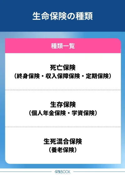 また、死亡保険には、大きく分けて3種類の保険があります。