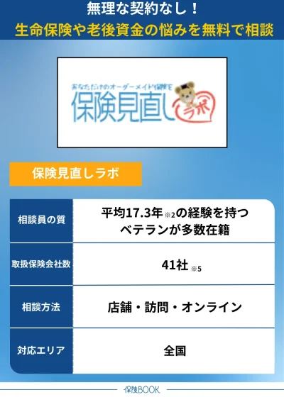 保険見直しラボは、業界経験平均17.3年※2のベテランコンサルタントに生命保険選びを手伝ってもらえる保険相談窓口です。