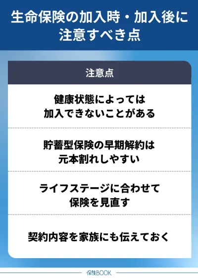 本記事では、生命保険の主な種類や加入するメリット、選び方、注意点について解説しました。