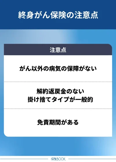 終身がん保険に加入する際の注意点は、以下のとおりです。