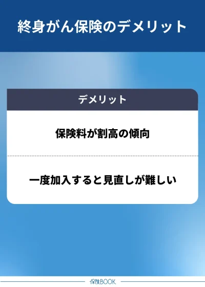 終身がん保険を選ぶデメリットは、以下のとおりです。