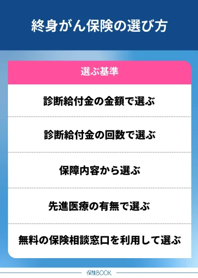 終身がん保険の選び方は、以下のとおりです。