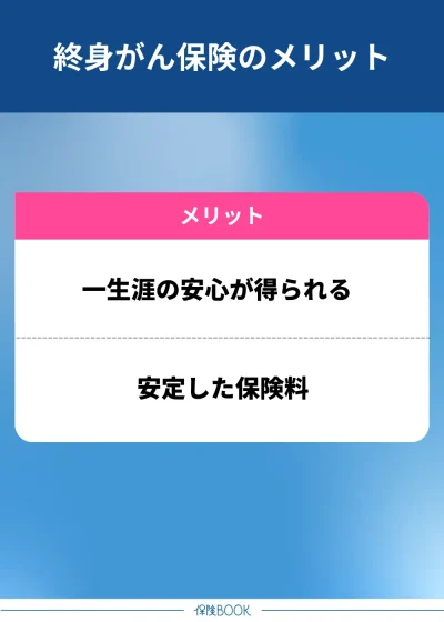 終身がん保険は長期的なリスクに備えるために安心感があり、保険料も安定している