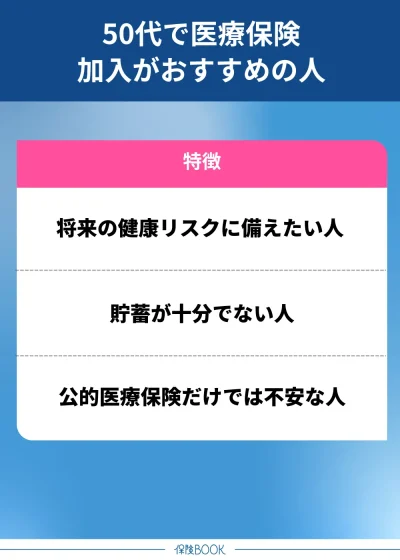 そのため将来の健康リスクに備えたい50代の人には、医療保険はおすすめです。