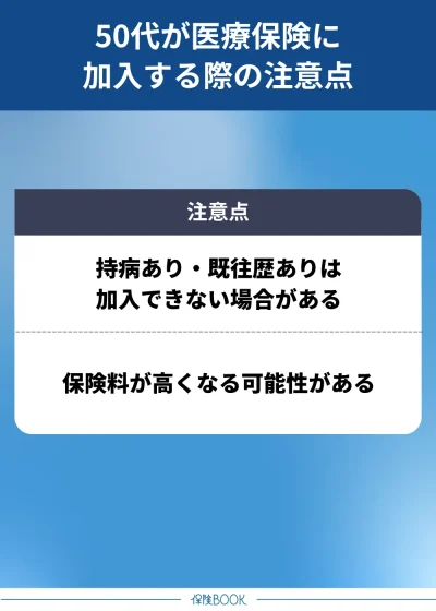 50代の医療保険加入時の注意点は、以下のとおりです。