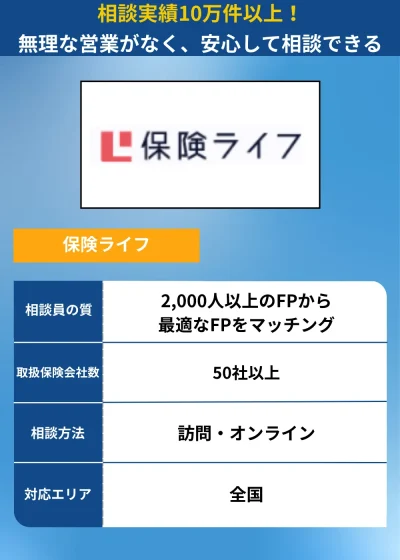 保険ライフは、10万件以上の相談実績があり、お客様満足度95%を獲得しているFP相談サービスです。