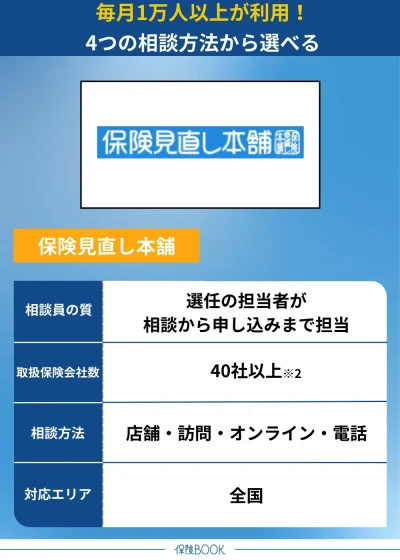 保険見直し本舗は、毎月1万人以上の人から利用されている人気の高いサービスです。
