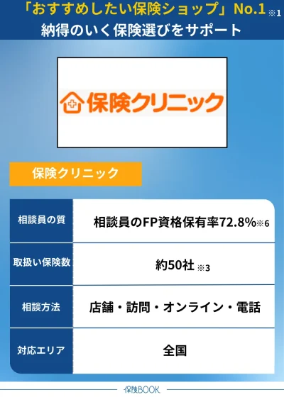 保険クリニックは、株式会社DRCの調査で「おすすめしたい保険ショップNo.1※1」を獲得しているサービスです。