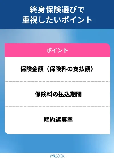 ここからは、終身保険選びで重視したい3つのポイントについて解説するので、自身でもしっかり理解しておきましょう。