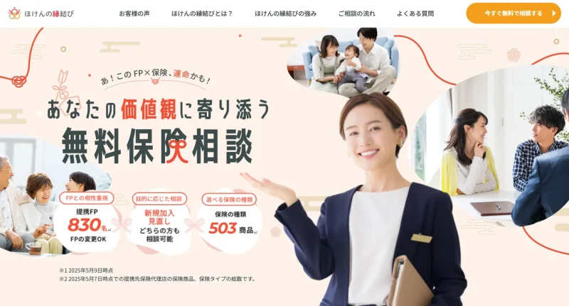 ほけんの縁結びは業界経験平均は10.48年※2の提携FPを紹介してくれる保険相談窓口。保険の提案だけでなく、個人年金保険のメリットでもある税金対策についても、幅広く相談できるのが特徴です。