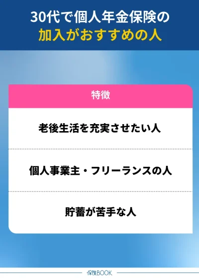 30代で個人年金保険がおすすめな人は、以下のとおりです。