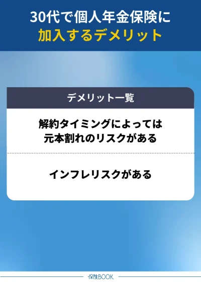 30代が個人年金保険に加入するデメリットは、以下のとおりです。