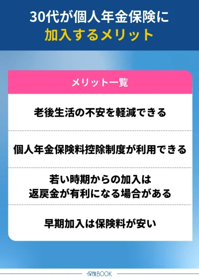 30代が個人年金保険に加入するメリットは、以下のとおりです。