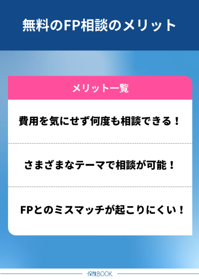 無料のFP相談のメリットは、以下のとおりです。