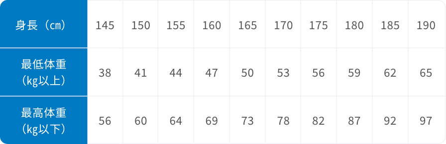 BMIの基準(18以上27未満)を満たす身長・体重の目安